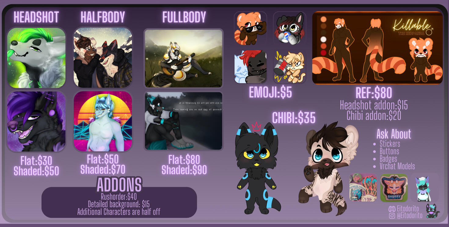 Front and back: $80Nsfw addon: $10Headshot addon: $15